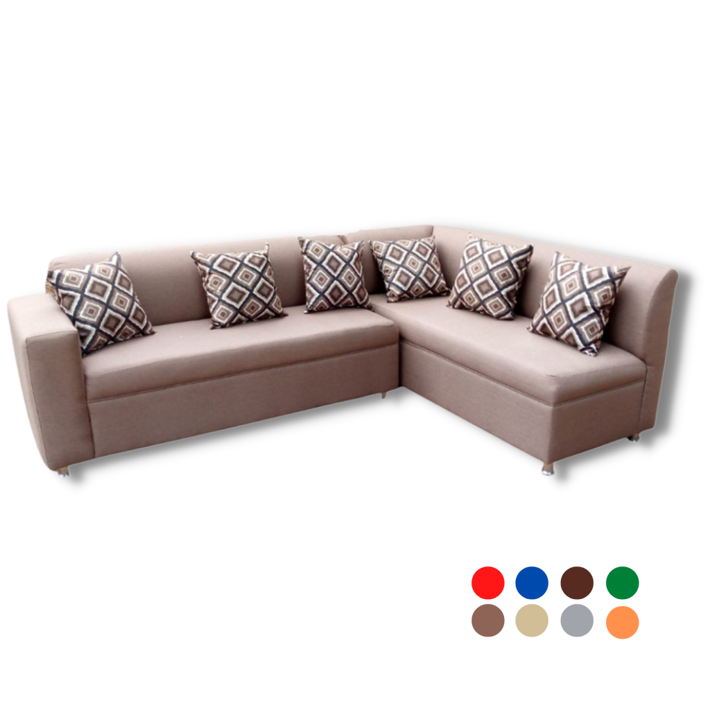 Cómoda sala tipo L con cojines suaves, practico tamaño.