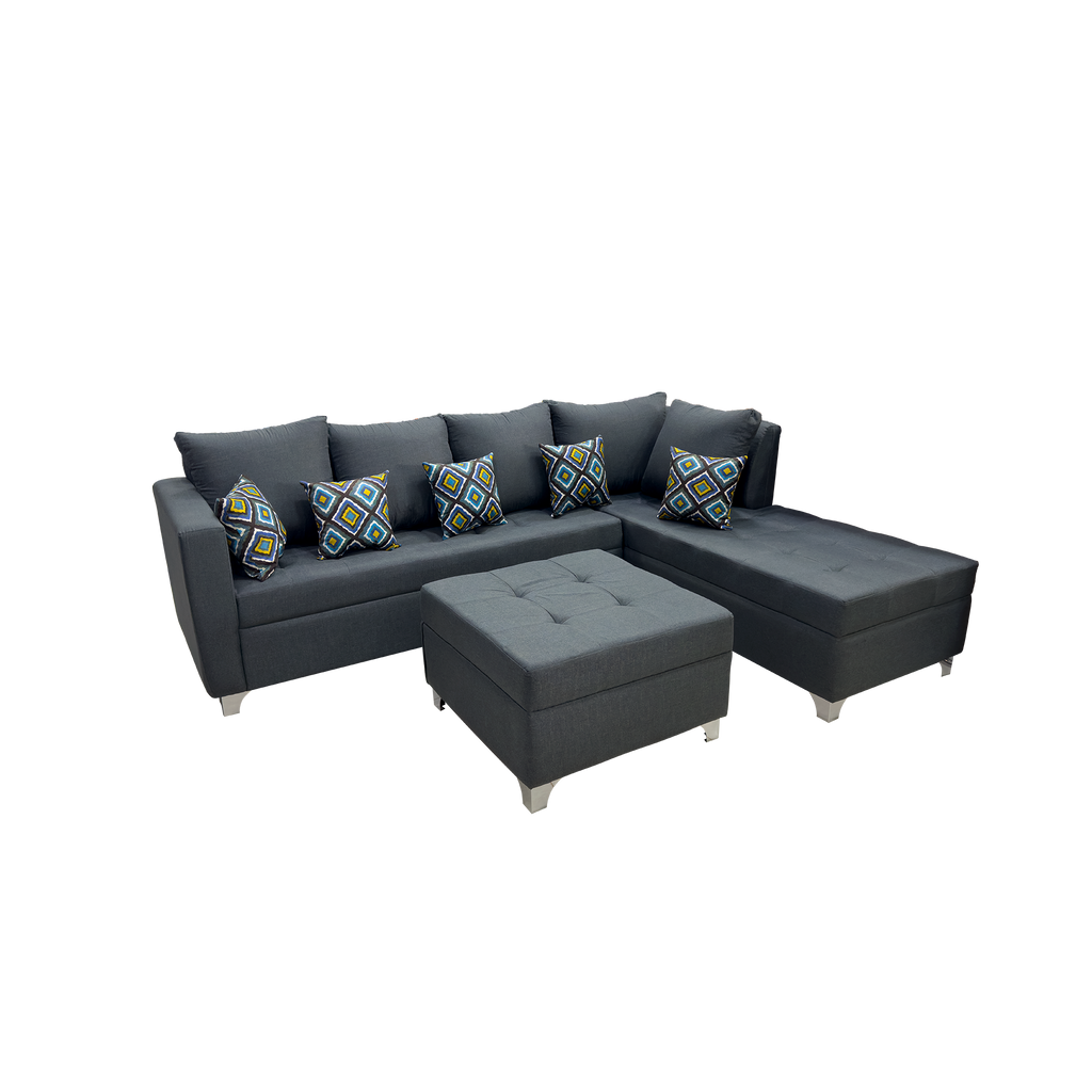 Cómoda sala tipo L con cojines suaves, practico tamaño. detalles de costura
