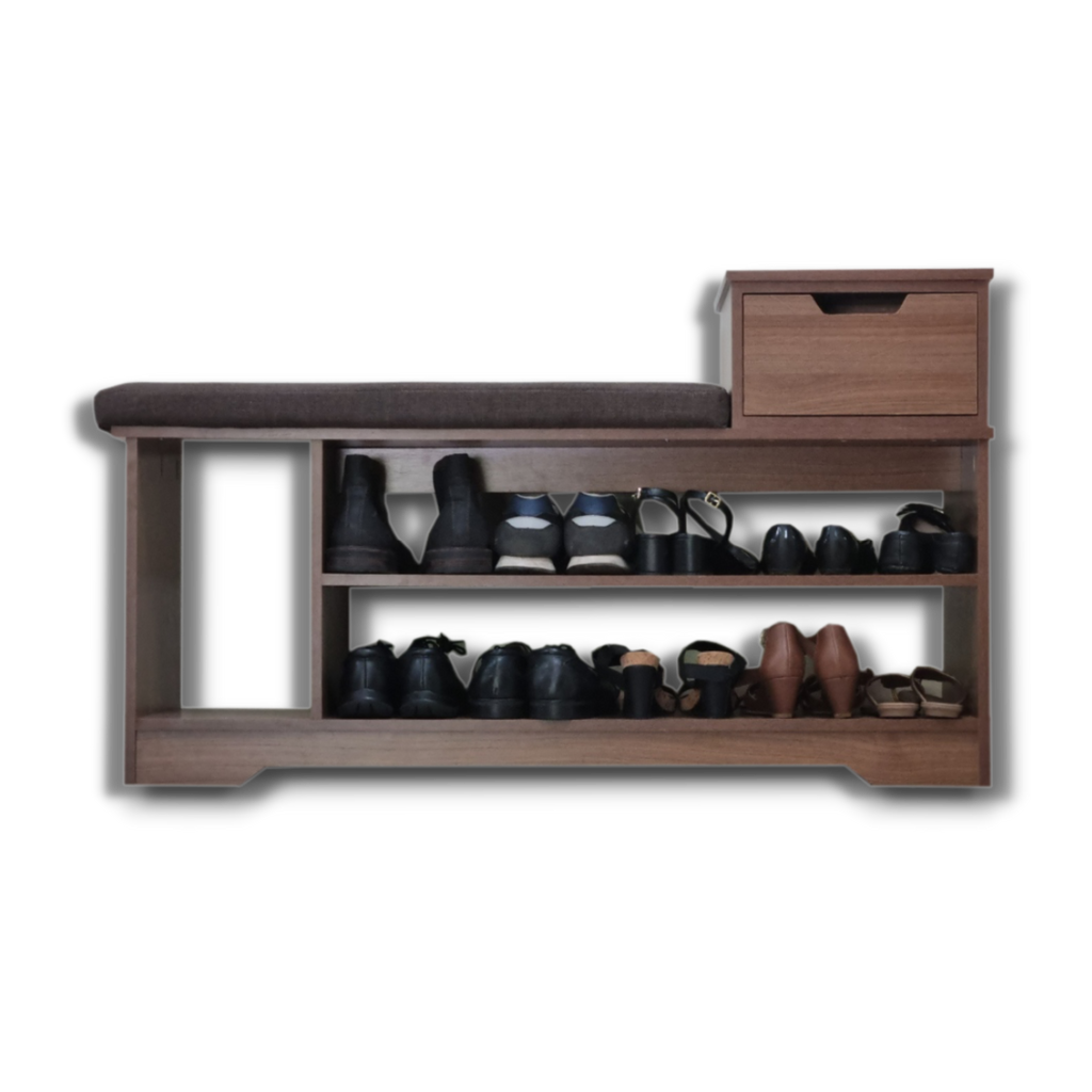 Zapatera grande con cajón para medias, gran espacio y asiento acolchonado.